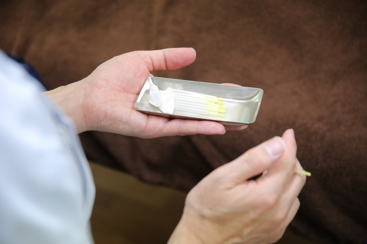 痛みの少ない、はり施術も当接骨院の特徴です。はり施術には不安を感じる方も多いのですが、カウンセリングで恐怖心をしっかり取り除いてから施術を行います。