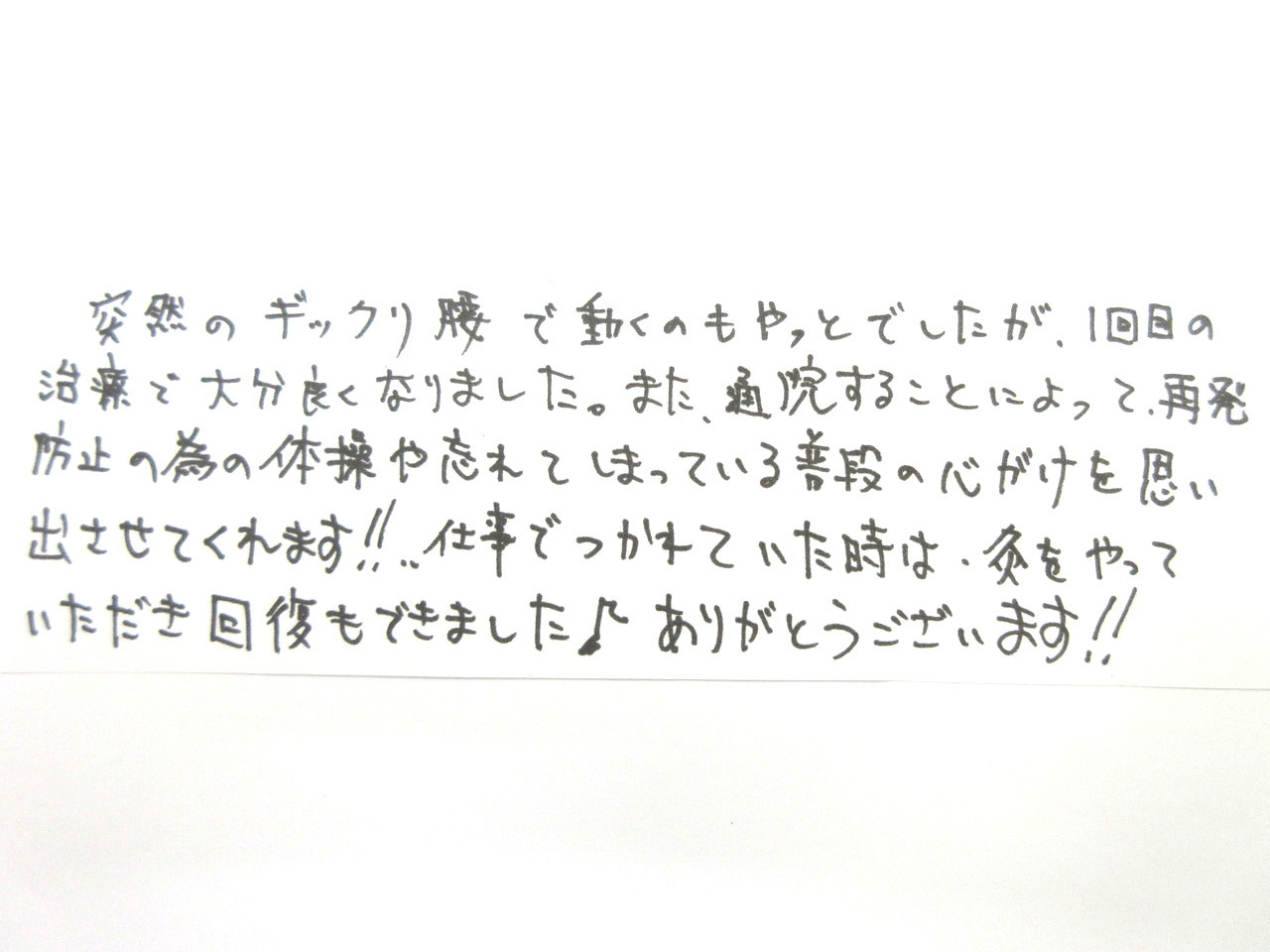 また、一度ぎっくり腰になると繰り返す場合もありますので、日常生活において予防に取り組むことも必要です。