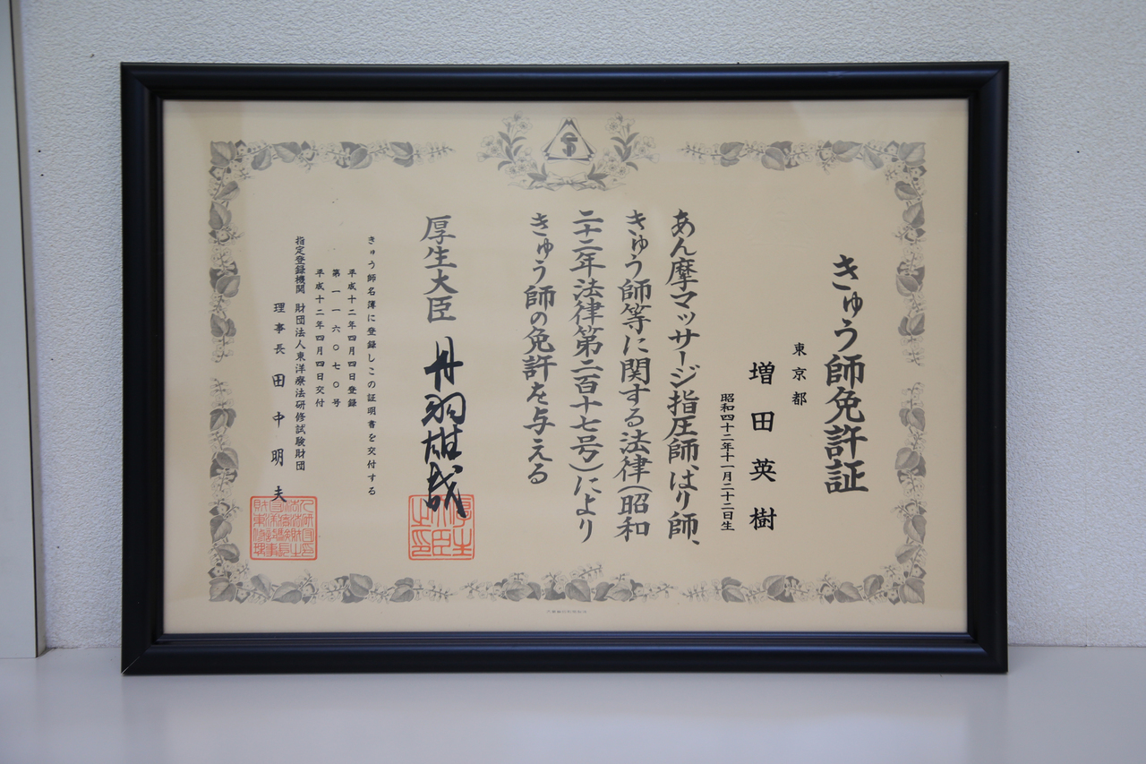 はり師、きゅう師、柔道整復師、あんま指圧マッサージ師の資格を持っていますので、安全な施術をご提供できます。